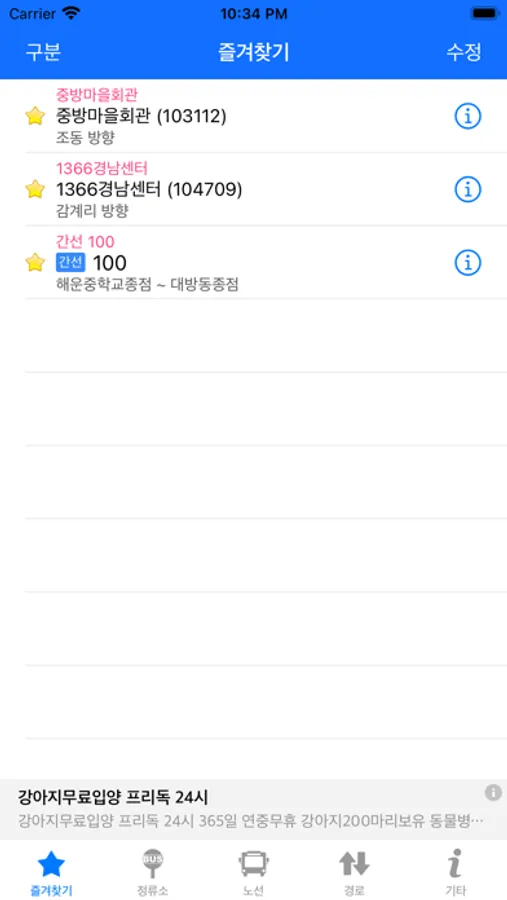 - 자주 이용하는 정류장 및 노선을 즐겨찾기로 등록
