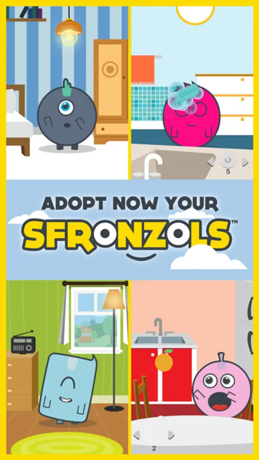 "Sfronzols" is a game but it's also a character and it interacts with you. They are born in a special way. No other Sfronzol will be like your own. It's a colourful little thing who is also needy, funny, witty and even a little cheeky.