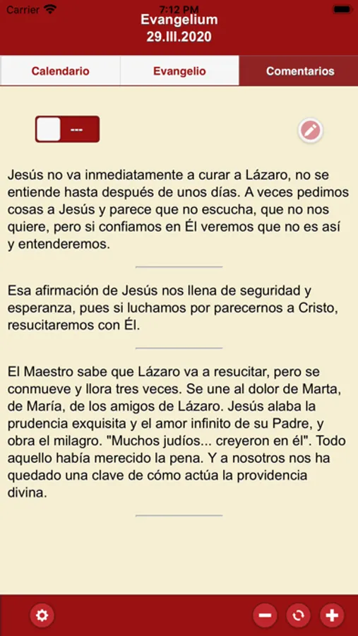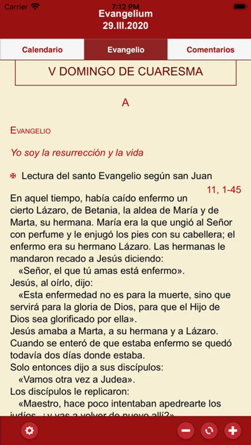 Taken from the Missale Romanum app, Evangelium gives you the Gospel readings for daily Mass in the Roman Catholic Church in three languages: Latin, Spanish, and English.