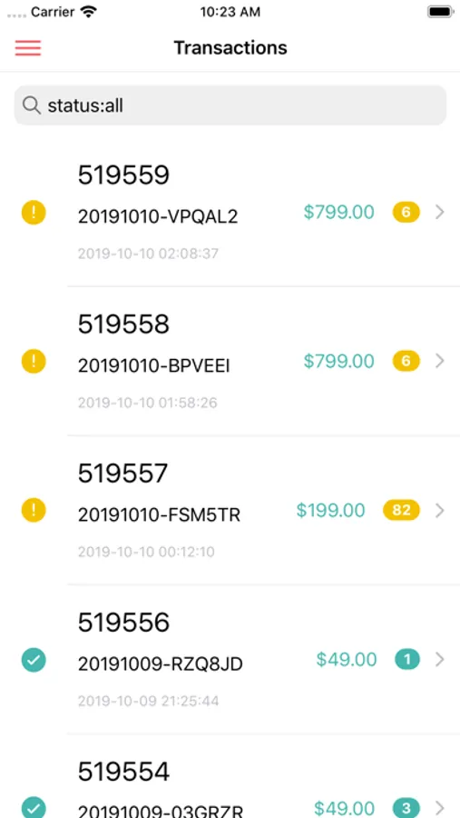 • View the current status of all order transactions.