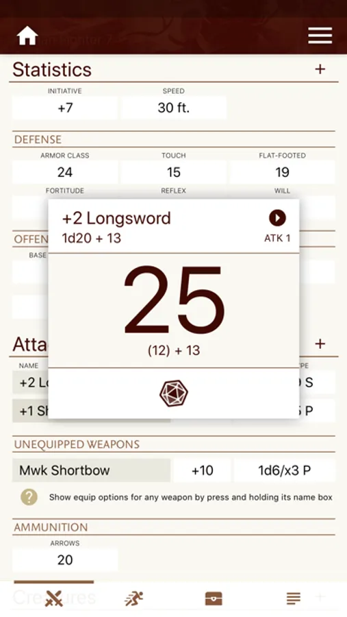 - Quickly access all of your important numbers like defenses, saves, abilities, skills, etc...
