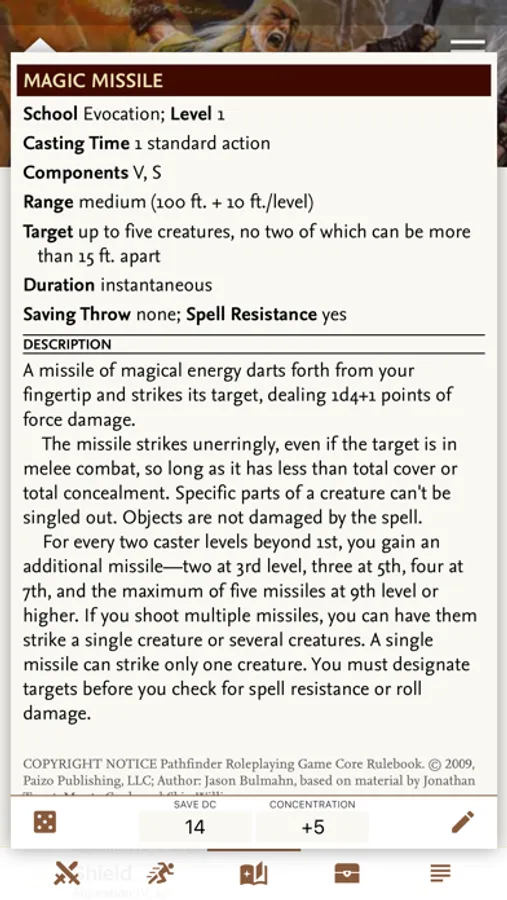 - Spellbook lets you scroll thru all of your spells and mark your prepared and used ones