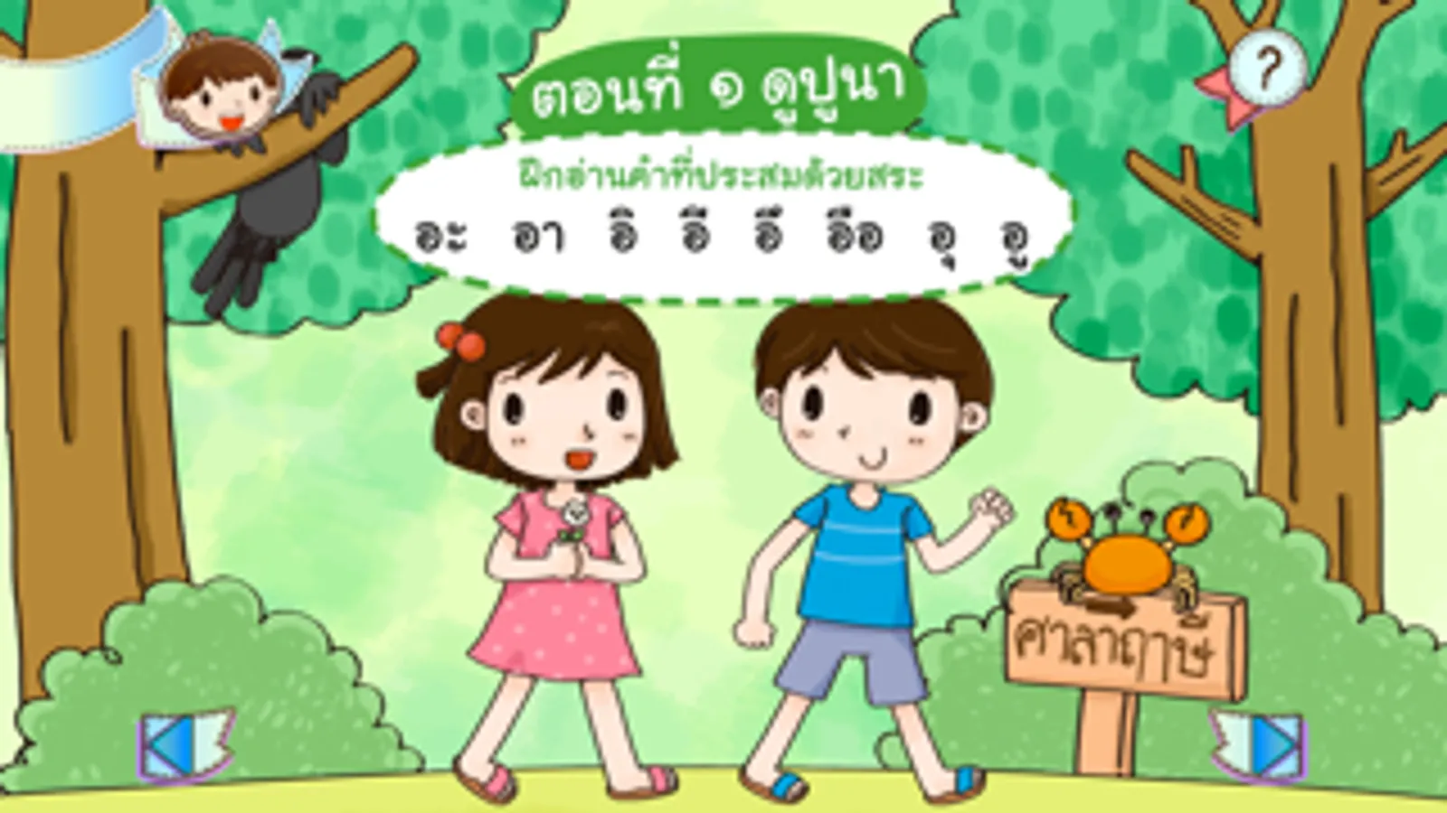Children practice reading words with a combination of the following vowels: อะ /a/, อา /aa/, อิ /i/, อี /ee/, อึ /ue/, อือ /ur, อุ /u/ and อู /uu/. They practice reading words composed of consonants and these vowels only.