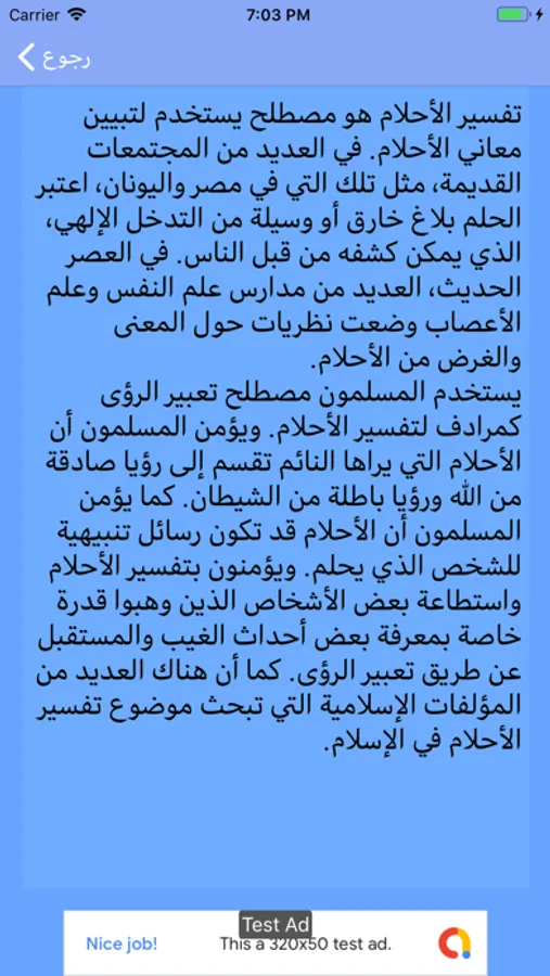 تطبيق مجاني يفسر لك حلمك حسب تفسير ابن سيرين وهو مرتب حسب الاحرف الابجدية فهو يمكنك من معرفة كل ما يجول في ذهنك عن الاحلام التي تراها في منامك, حمل هذا التطبيق الان على جوالك .. فلا حاجة لشراء الكتاب نفسه بعد اليوم