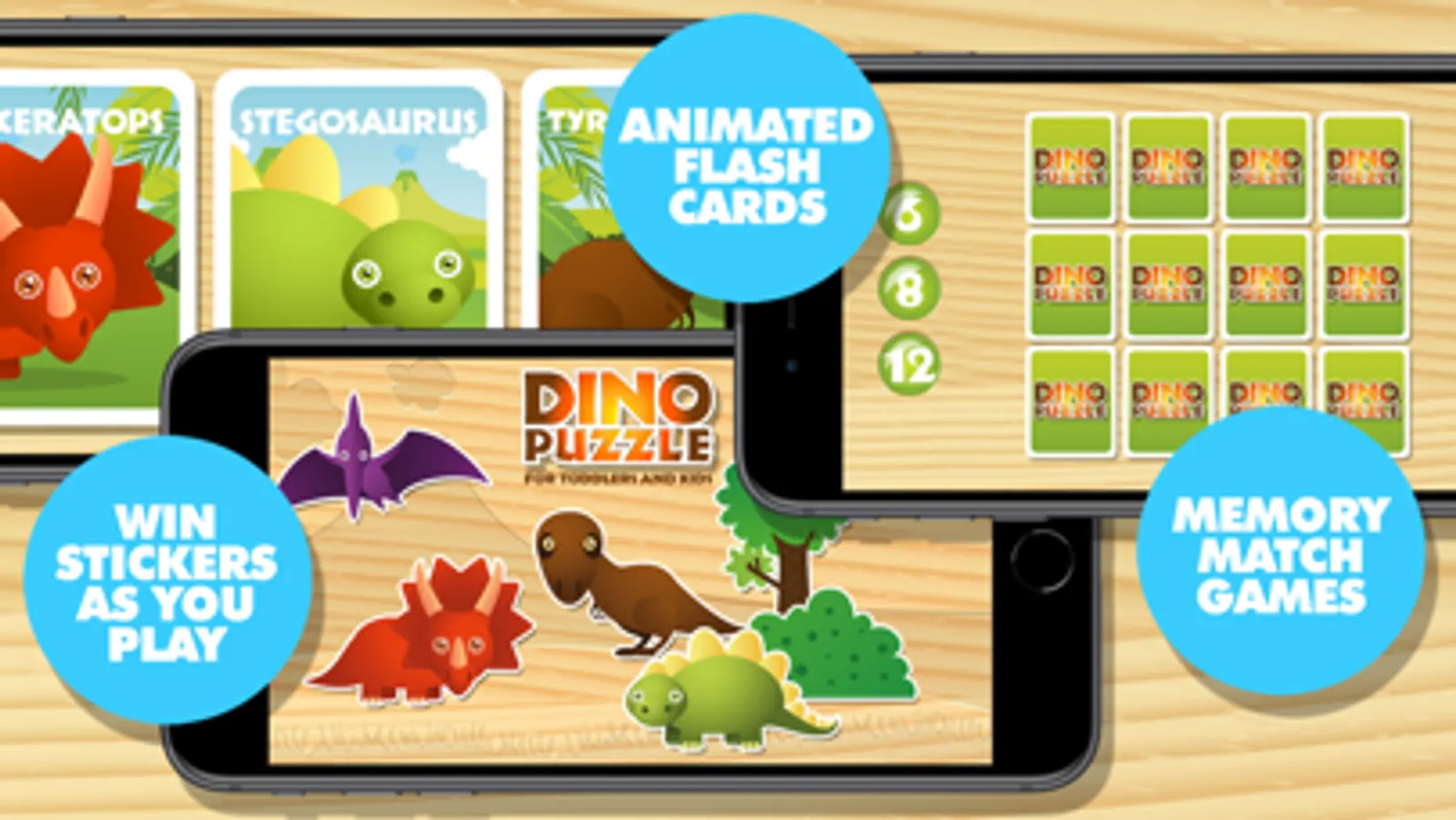 But the fun doesn't end there, alongside the dino puzzles and stickers is a great memory match game and animated dinosaur flash cards.