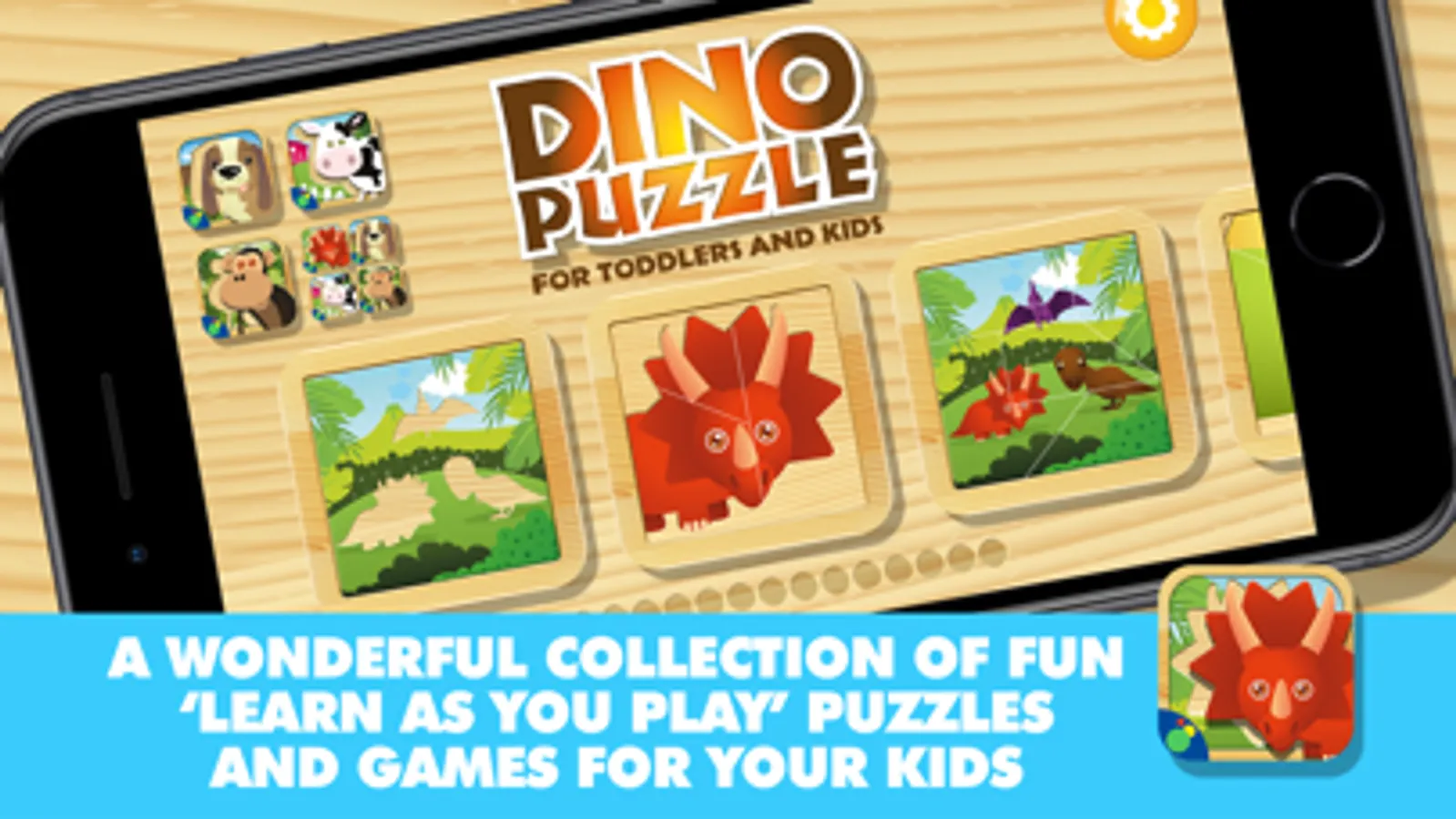 Dino Puzzle is a set of early learning games for preschool children aged between 12 months and upwards. It’s a fun way to introduce your child to the amazing world of dinosaurs whilst teaching them motor and problem solving skills.