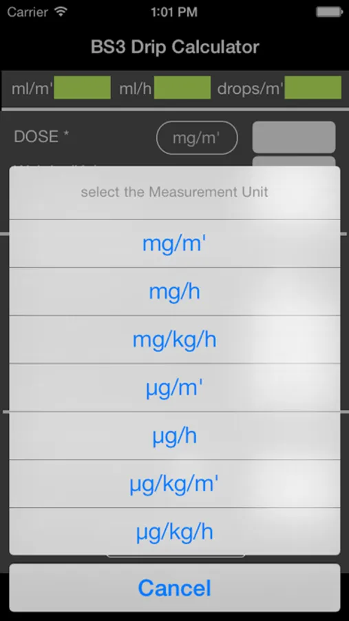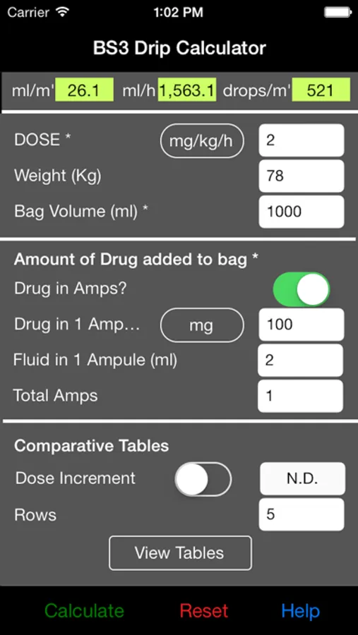 In clinical practice it's usual for nurses to dilute the drugs to be administered in the concentration prescribed by the doctor. This tool allows you to prepare any drug, obtaining any final concentration expressed by ml/hr and/or by drops/min, if necessary.