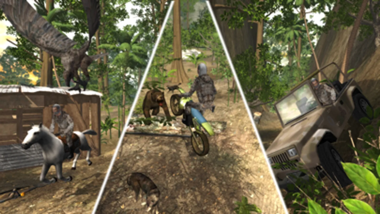 Take every weapon you can with you, load it into your 4x4 Off-Road Vehicle, Motorbike, Boat, Horse or track your prey by foot.