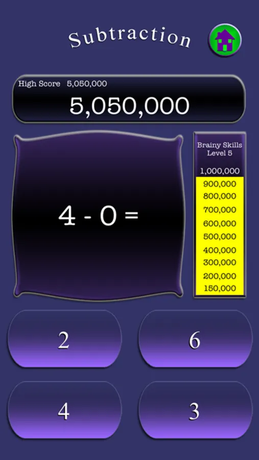 This is a simple game used for learning math skills. Answer a multiple choice question while working your way up the scoreboard for points. It's that easy! Motivate your child to beat their score each time they play and get to the highest score.