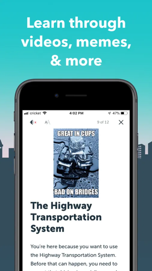 This is the ONLY native app that lets you take Drivers Ed! Say goodbye to long, boring lectures and say hello to entertaining memes & video lessons.