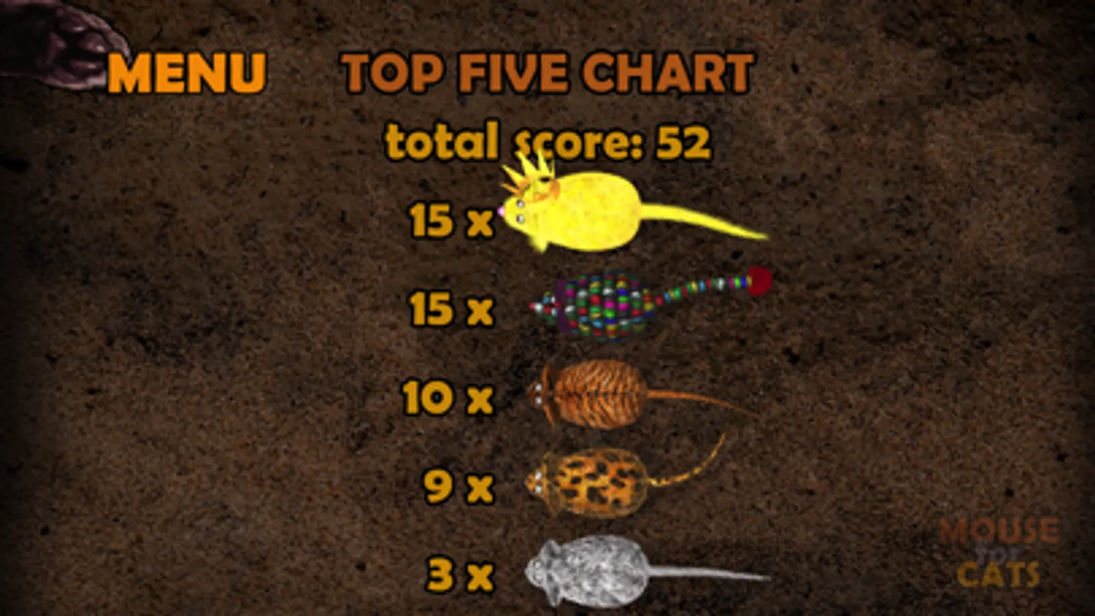 There are 11 different, interesting and exciting mouse levels! Game is built, timed and optimized for cats! Three mini-games after each 100 hits. Mice are all in different colors with animated shape, irritating tail moves and sounds so your cat pays a serious attention to the game.
