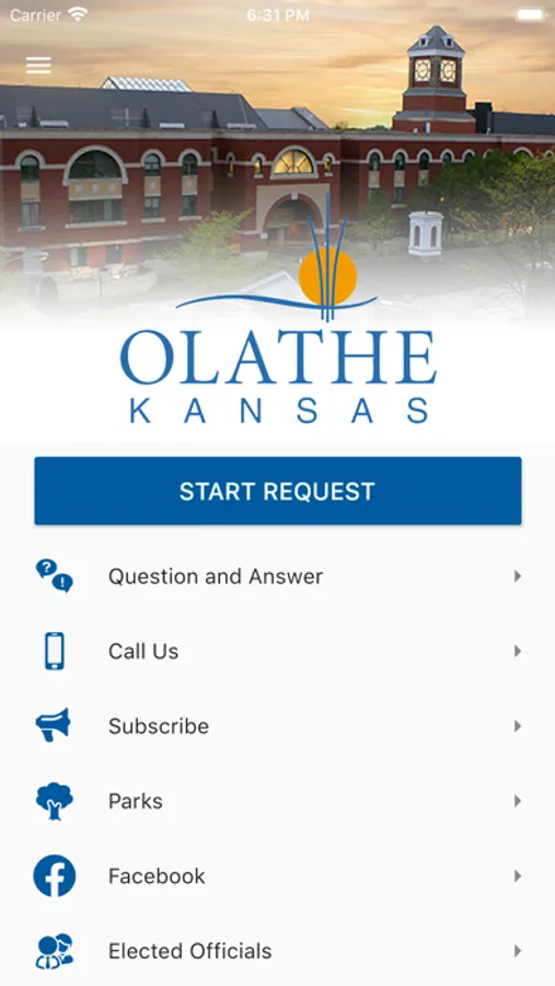 Report an issue, Call Us or check Facebook with OlatheConnect for iPhone.