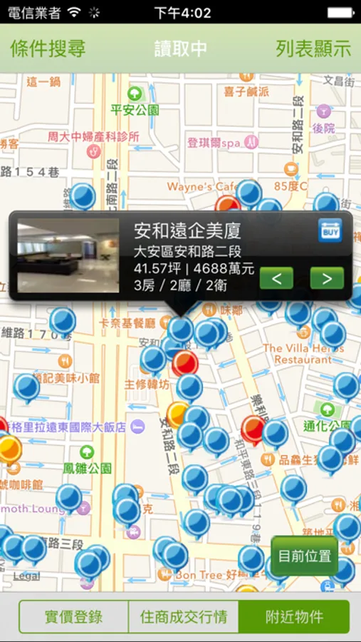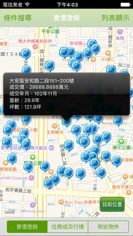 房產實價快搜,顯示您目前位置或指定地點的實價登錄行情與待售物件。