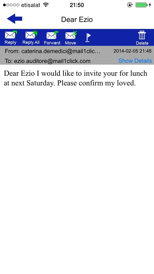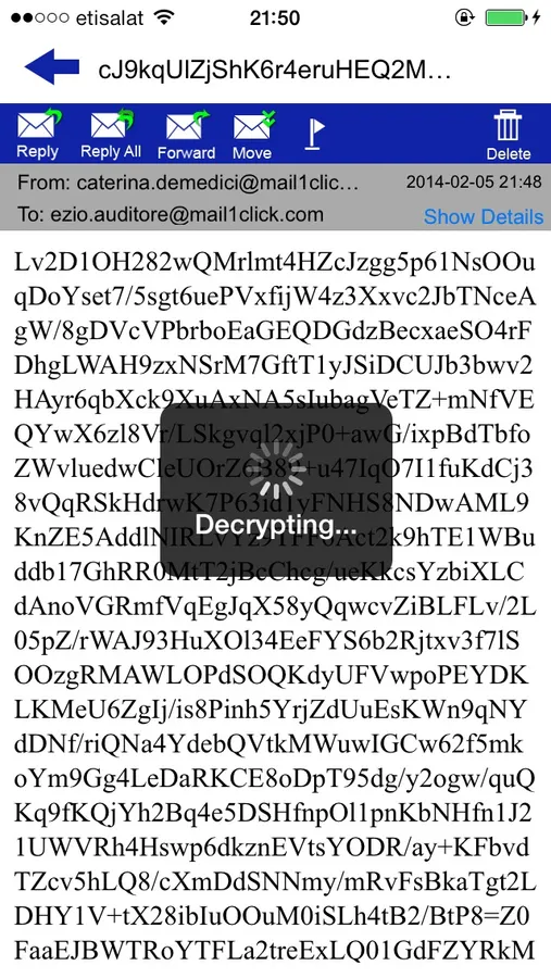You can access your encrypted mailbox using your device or by the web mail interface available at: https://www.mail1click.com
