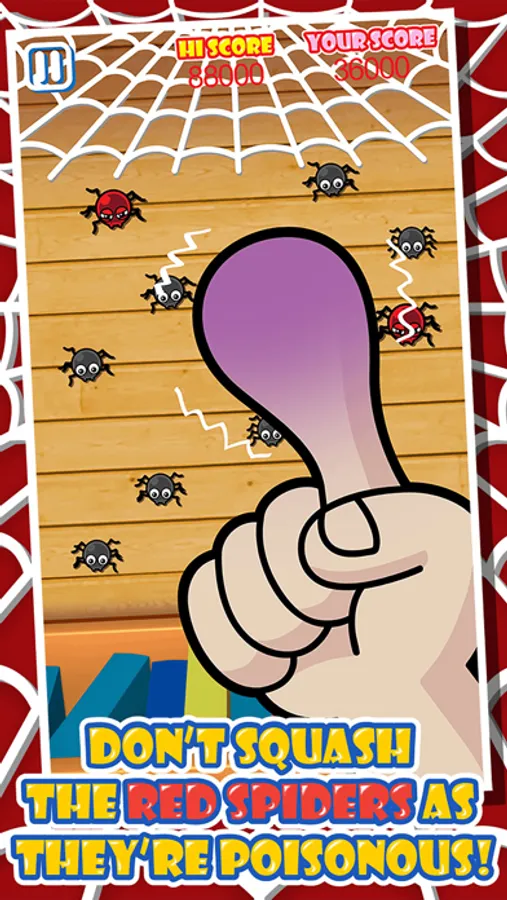 Tap the spiders with your finger to squash them, if the spiders touch your bookshelf, the game is over.