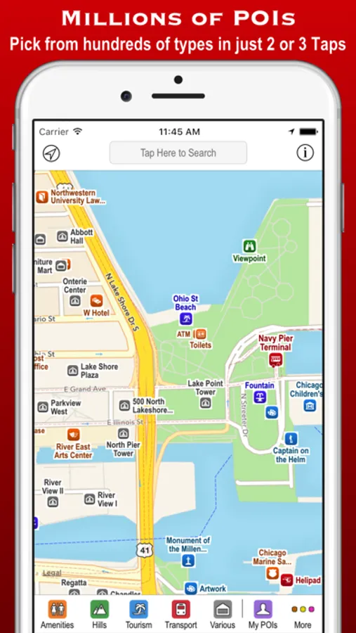 Poison Maps (“POIs on Maps”) is the ultimate app for finding Points of Interest anywhere in North America. It includes millions of POIs and thousands of miles of routes, all stored on your device for use even when offline.