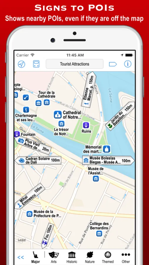 • signs pointing to offscreen POIs, so that you never miss a nearby POI;