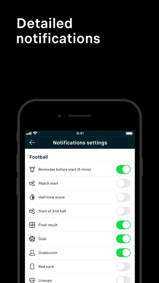• NOTIFICATIONS AND ALERTS: Match starts, line-ups, goals - you will not miss any of it again. Just select your favourite matches and wait for your mobile device to let you know.