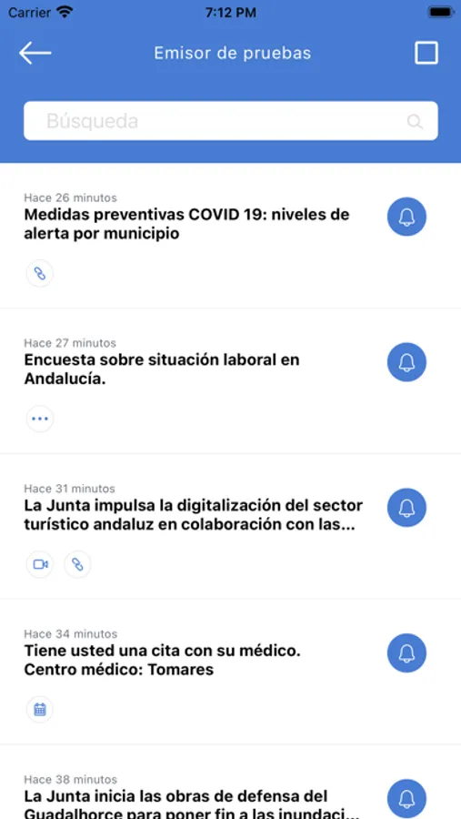 Si no estás suscrito a ningún servicio de avisos SMS de ninguna entidad de la Junta de Andalucía, no recibirás ningún aviso a través de Avisos Junta. Puedes suscribirte a los distintos servicios de avisos que tienen disponibles las distintas entidades de la Junta de Andalucía en las webs de las distintas entidades o a través de la vía que éstas hayan establecido. También puedes consultar las fuentes de avisos disponibles a través de la propia APP Avisos Junta, en la parte de Configuración/Fuentes de Información, donde cada entidad de la Junta de Andalucía irá publicando sus fuentes de avisos.