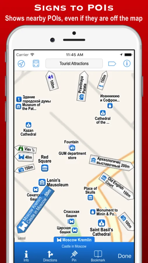 • signs pointing to offscreen POIs, so that you never miss a nearby POI;