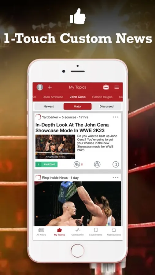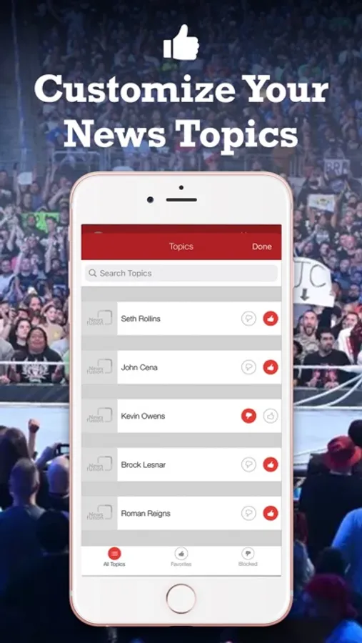 * Your very own news feed - Choose the topics and WWE wrestlers you want to follow
