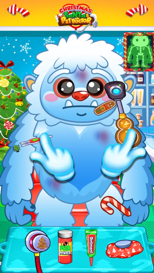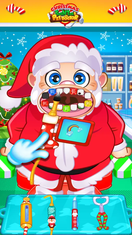 Merry Holiday App for Santa’s Pals & Pets! Test your Dental and Doctor skills on Santa, Mrs. Claus, Rudolph, Comet, Charlie the Elf, Bumbles the Yeti, Yukon the Dog, and Sam the Snowman. Ho-Ho-Ho!