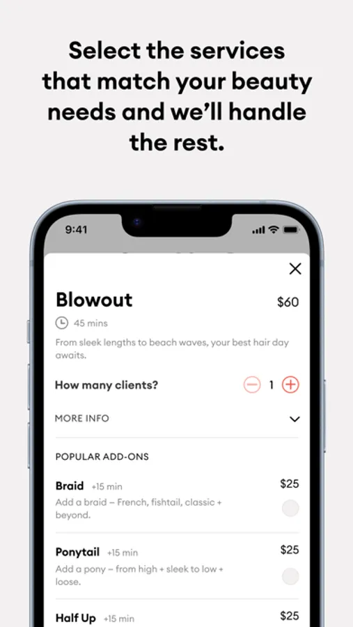 It's easy! Simply select a date, time, location and payment method to secure your appointment and our pros arrive fully prepared with tools and products to customize a look you'll love.
