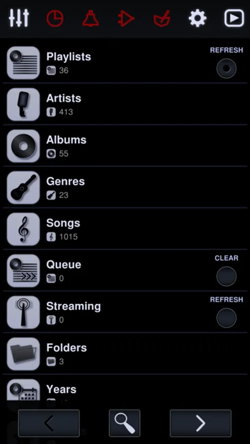 * Media library grouping by: album, artist, composer, genre, year, rating, folder