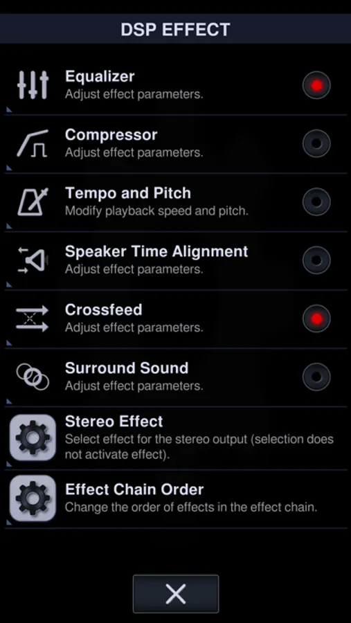 * Output to Chromecast (up to 24-bit, 192 kHz, no limit for a format or DSP effects)