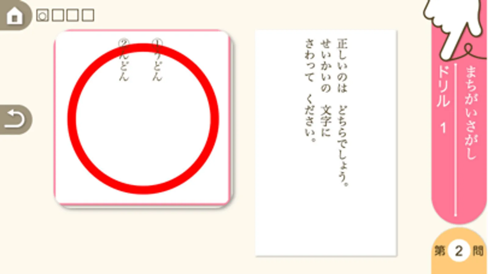 =>選択肢から正解を選ぶ問題です。正しい表記や、言葉の使い方を学習します。