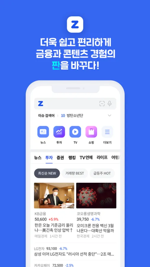 투자 정보, 실시간 뉴스, 이슈 검색어, 인기 방송 하이라이트 영상, 라이프 스타일 콘텐츠까지 줌앱에서 쉽고 편리하게 즐겨보세요.