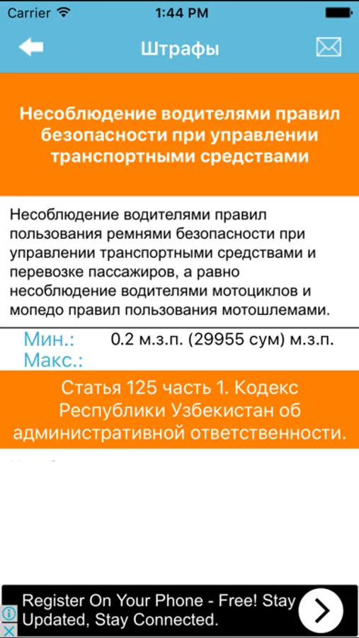 Приложение содержит свод правил в Узбекистане, регулирующих обязанности участников дорожного движения, дорожные знаки и разметки, технические требования, предъявляемые к транспортным средствам, а также контакты организаций, которые полезны автолюбителям.