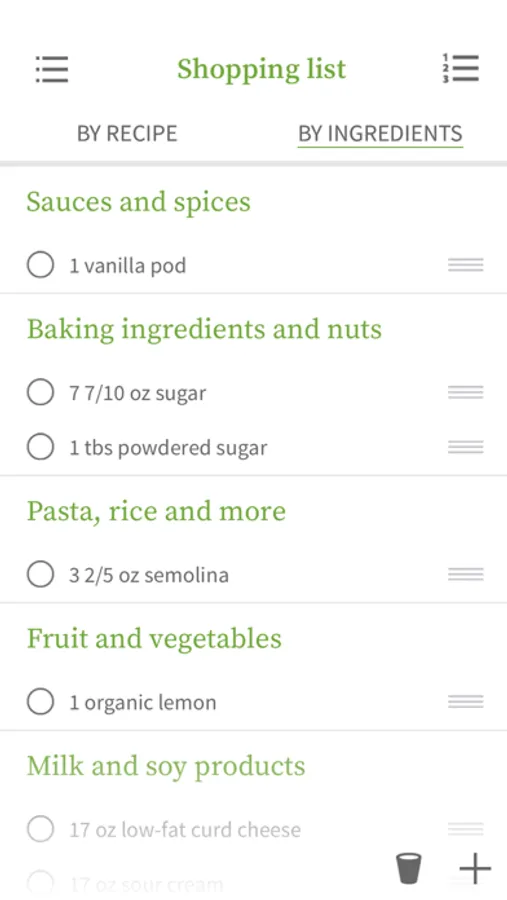 • Create a shopping list: Create a shopping list with the ingredients of your selected recipes
