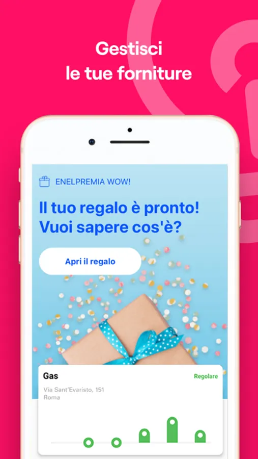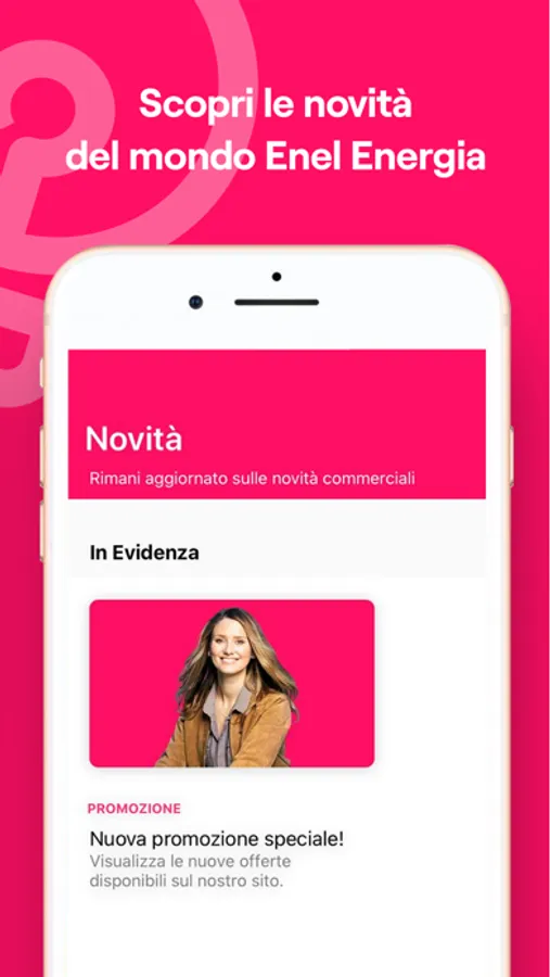 Benvenuto nella nuova applicazione di Enel Energia. Sei già o stai per diventare un nostro cliente con forniture luce e/o gas e/o fibra? Scopri tutto ciò puoi fare: