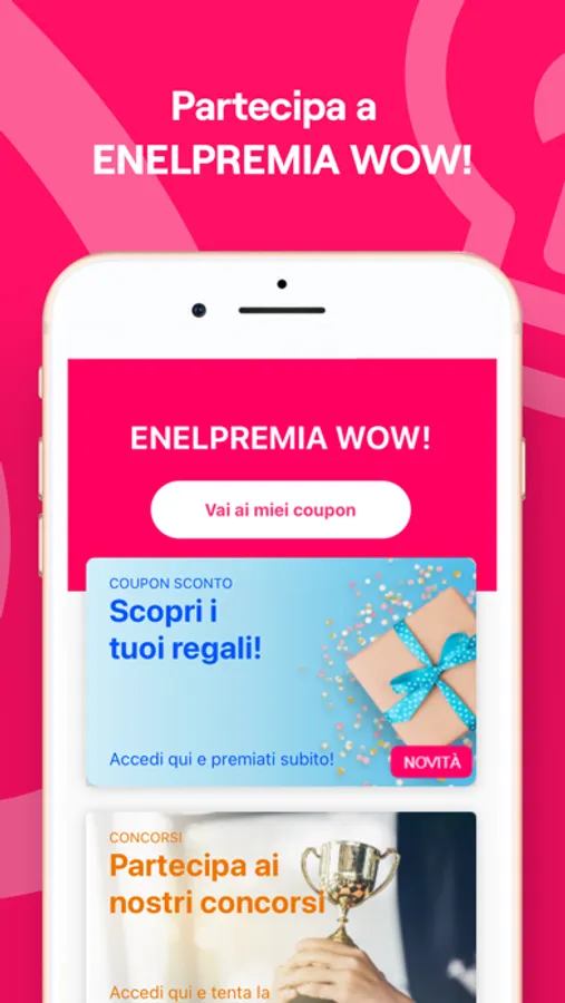 Entra in ENELPREMIA WOW!, il programma fedeltà gratuito di Enel Energia che ti premia ogni settimana con tantissime sorprese. Scopri come ottenere coupon per risparmiare con i tuoi acquisti, vincere premi e o sconti in bolletta partecipando ai nostri concorsi.