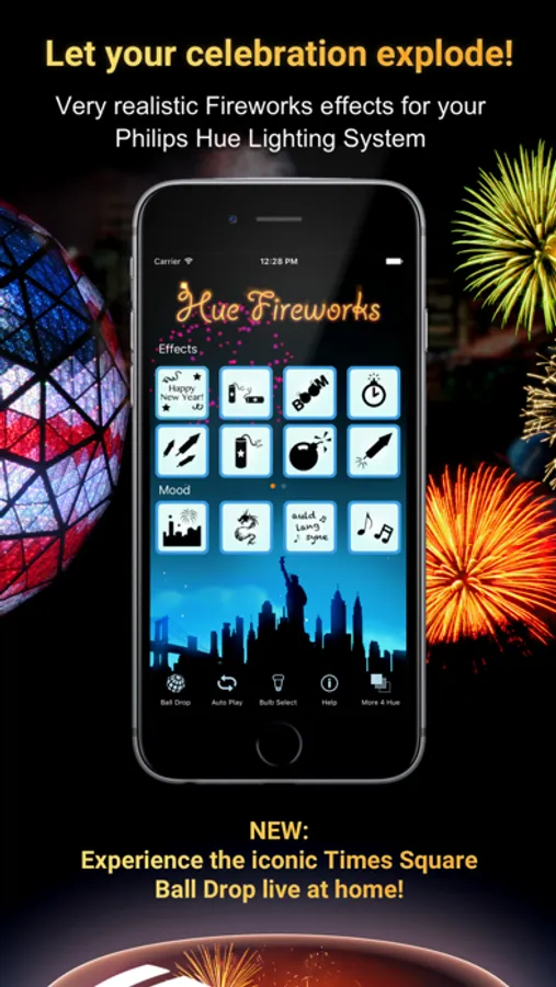 Have firecrackers burst in your room and let colourful rockets light up the ceiling or have your party crowd go wild with a New Year’s Eve countdown that blasts your room with colour. Hue Fireworks lets you create explosive celebrations with a beautiful dynamic interface and exploding fireworks. All you need is the Philips hue connected lights and this app. Darken your room and connect the audio to your speakers. It’s never been easier to get the party going.