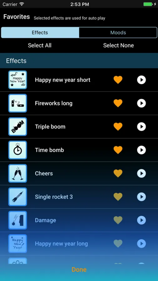 - Favorites screen to create your own selection of the best effects for the auto player.