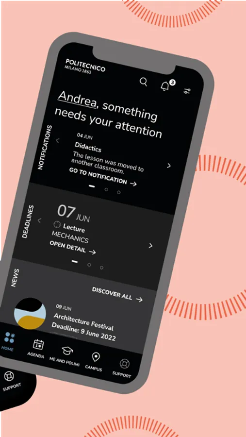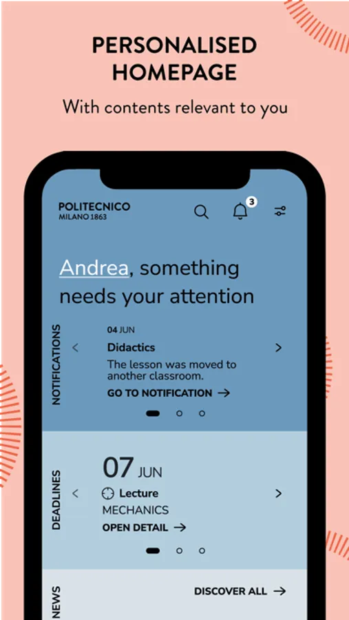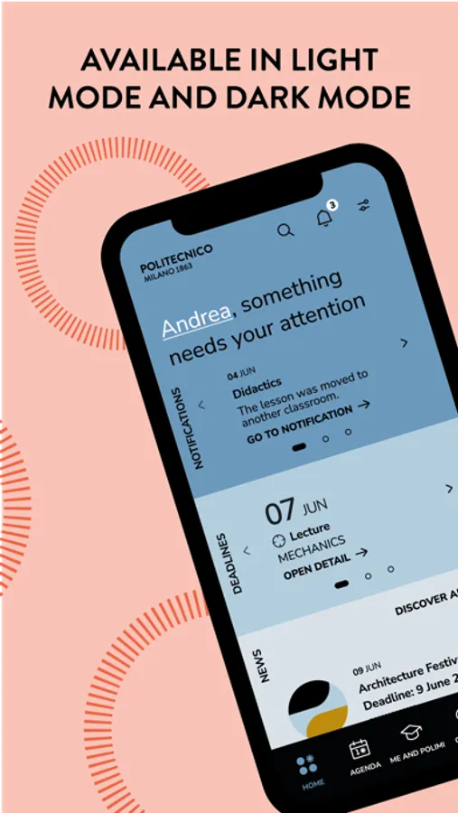 The first release of the new Polimi App, which will gradually integrate the services of the Politecnico di Milano digital ecosystem.