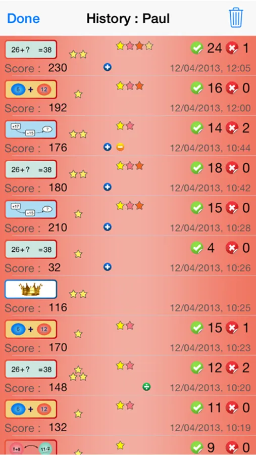 The full version includes 3 levels of difficulty and the 3 operations : + - x