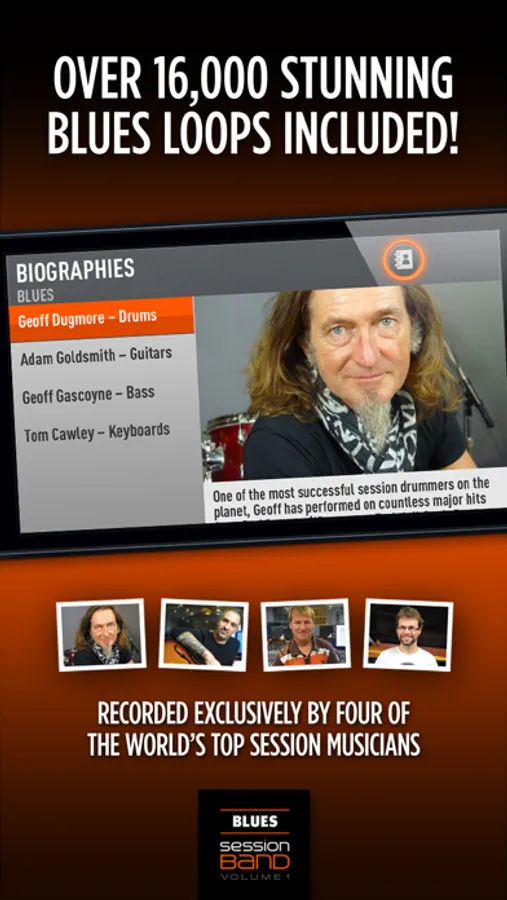 With over 16,000 stunning, chord-based Blues loops (included) individually recorded by 4 of the world's very best session musicians, SessionBand Blues instantly converts the chords you select into great sounding audio – wherever you are and whatever your ability.