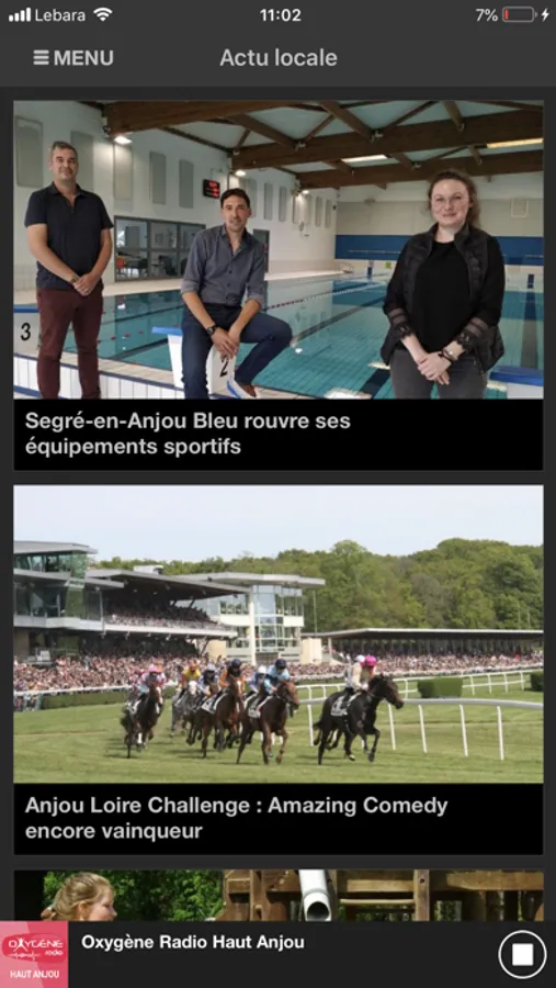 Oxygène Radio, votre radio 100% locale en Anjou et Mayenne. Segré 103.3 / Pouancé 106.3 / Laval 90.1 / Angers 94.4 et à Nantes et au Mans en DAB+