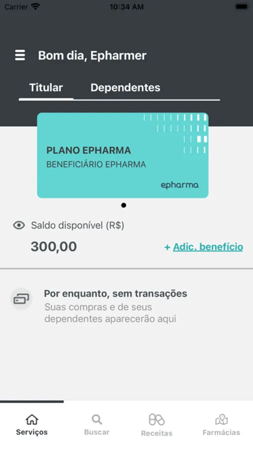 Com o app epharma você tem acesso rápido, seguro e tem diversas vantagens, como os cartões virtuais que facilitam o seu acesso aos medicamentos e descontos, o histórico de utilização do seu benefício, o limite do seu saldo e também te ajuda a localizar a farmácia mais próxima para realizar suas compras.