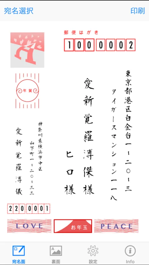 - You can adjust the print position of the name and address and postal code by tapping the screen.