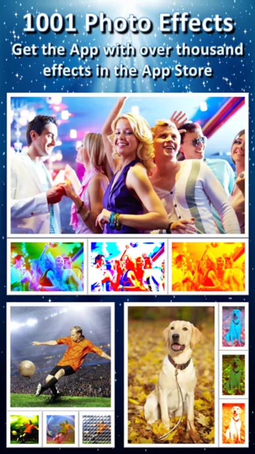 1001 free photo effects: select a photo → select an effect → send to friends → done!