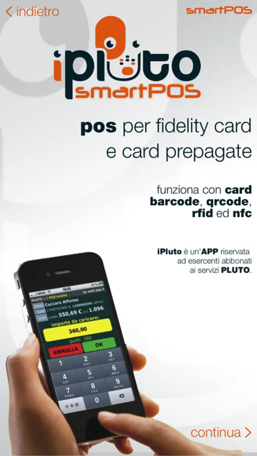 iPluto ti permette trasformare il tuo smartphone in un POS per raccolte a punti e card prepagate.