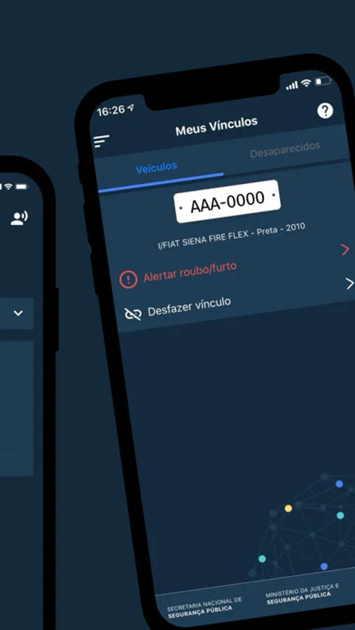 - Consulta Veículos: permite ao cidadão consultar a situação de roubo ou furto de qualquer veículo do Brasil. As informações são consultadas diretamente no banco de dados do Departamento Nacional de Trânsito (DENATRAN).