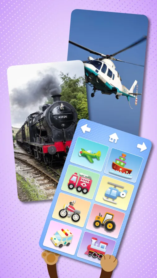 Welcome to App For Kids - A fun and educational app for children between the ages 0-4 years! Through sight and sound there are 110 different words and items to get acquainted with. When you click on an animal, a vehicle or another item a real-life photograph of that item pops up and its special sound is played, for example a dog barking. A voice will reveal the name of the item displayed.