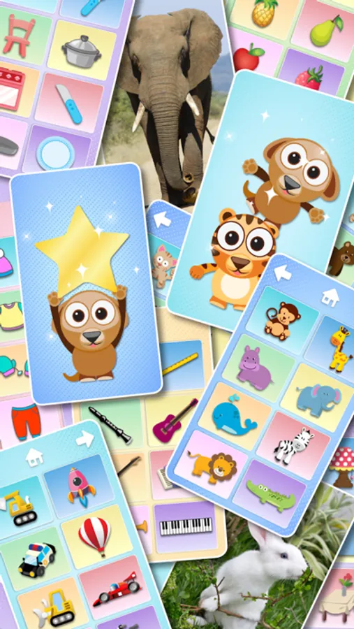 In Guess the Item, 4 different images are shown and a voice will ask the child to locate a certain item, for example "Where is the airplane?". If the child taps the correct item, it gets animated and its special sound is played.