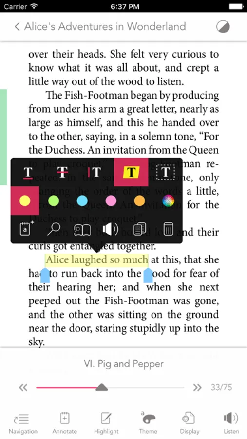 - Bookmark pages, highlight or underline text, add notes to a page or to a selected text
