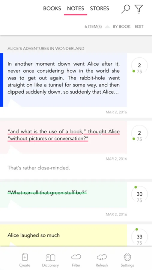 Highlight excerpts, take notes in your books, listen to them thanks to the vocal synthesis, organize your books and notes, add your favorite bookstores and much more!
